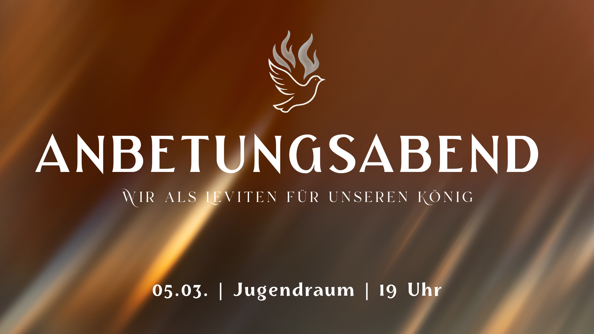 Wir wollen einfach Gott anbeten und auf den Heiligen Geist hören und warten! Ohne viel Programm und Agenda, und schauen, was Gott tun möchte! Also komm erwartungsvoll für das, was Gott tun will! Wir werden nicht viel vorbereiten, sondern uns einfach zur Verfügung stellen und singen, was der Herr uns auf das Herz legt. Im Jugendraum, um 19 Uhr - wir freuen uns auf euch!