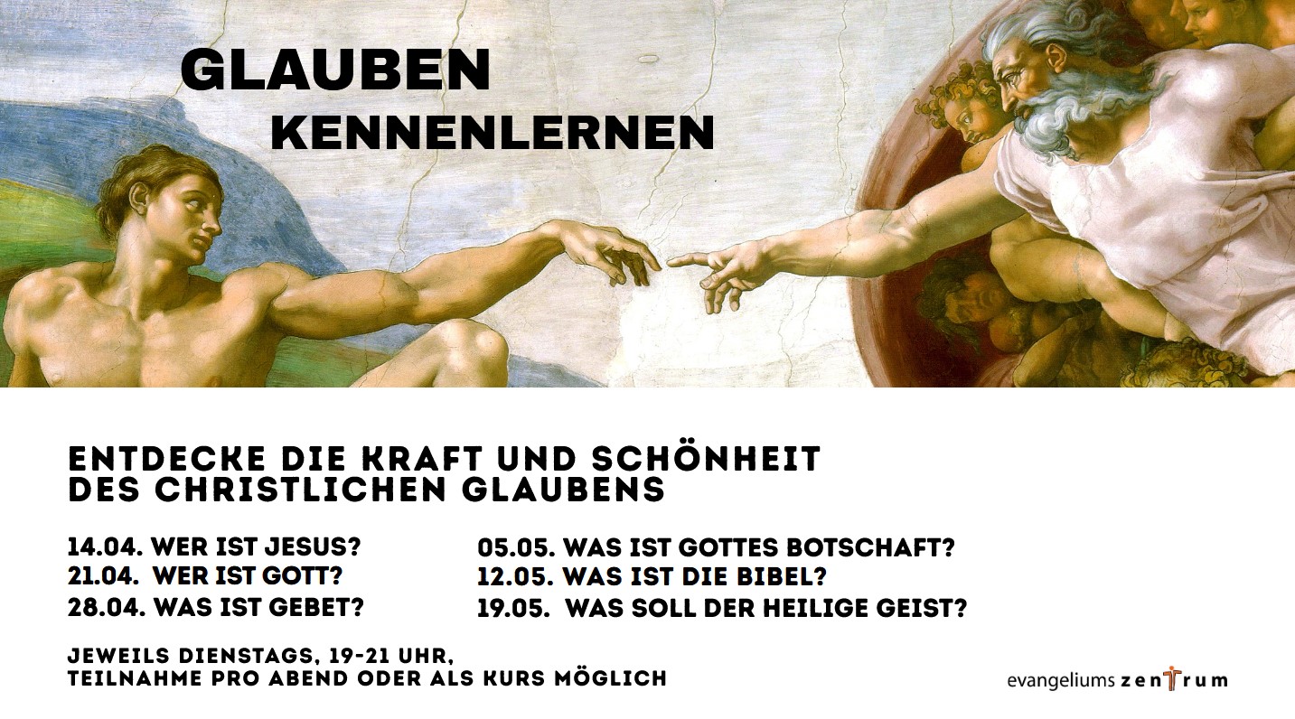 Wir treffen uns an 6 aufeinanderfolgenden Dienstagen von 19:00-21:00 im Evangeliumszentrum.